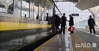 2026.03.136年ぶりに運行再開された平壌行き列車に乗る人々 /中国・北京
