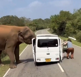 2026.01.29体重3トンの野生のゾウが突進…観光客が乗った車両を持ち上げる