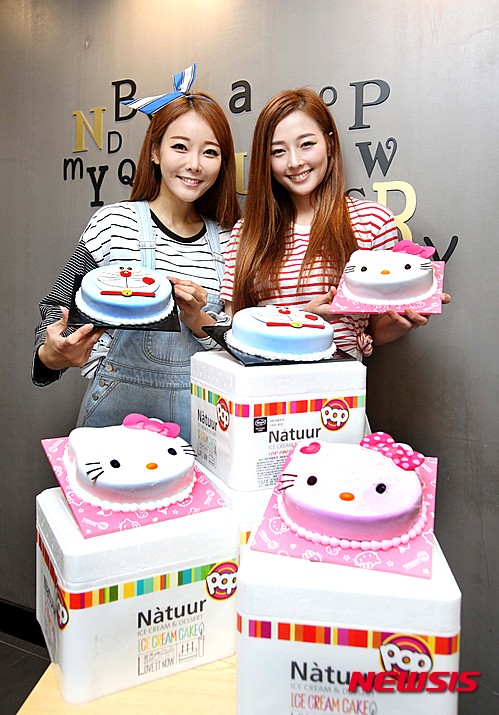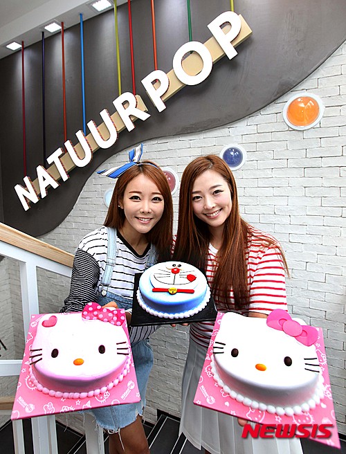 アイスクリーム専門店「Natuur POP(ナチュール・ポップ)」が「子どもの日」に当たる5日まで、「キャラクター・アイスクリームケーキ」を5000ウォン(約555円)割引販売するイベントを開催する、と4日発表した。写真は、ケーキを手にポーズを取るモデルたち。
