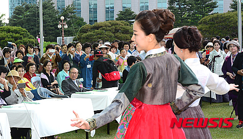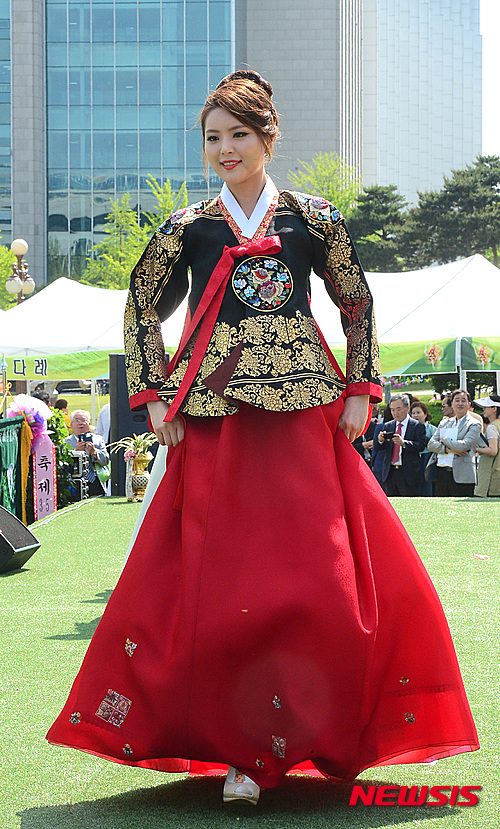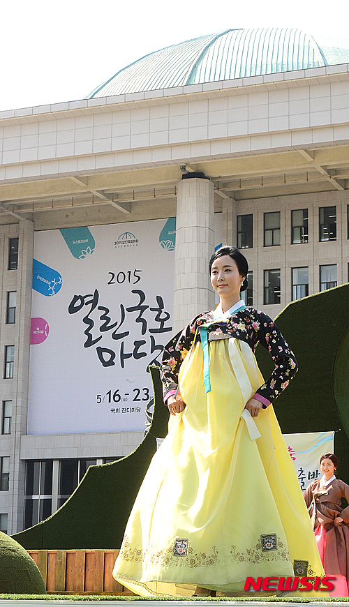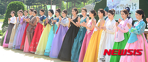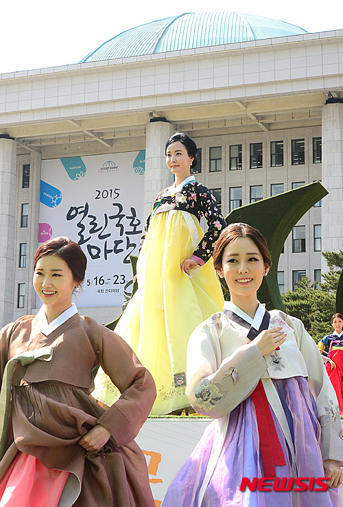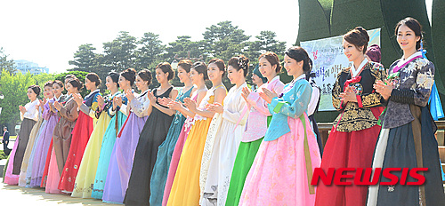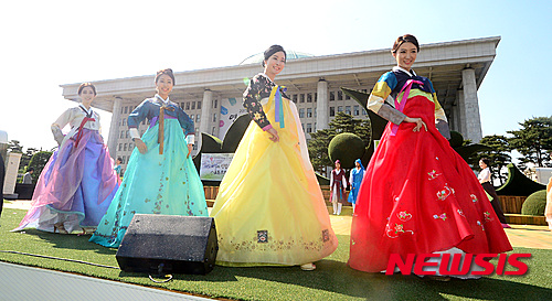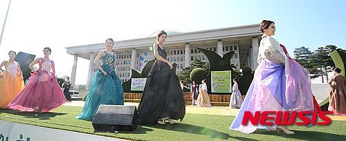 八道多文化フェスティバルが開催された国会議事堂(ソウル・汝矣島)前の芝生広場で20日午後、ミス大邱候補者たちが韓服(韓国の伝統衣装)に身を包み、ランウェイを歩いた。
