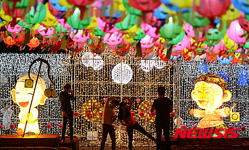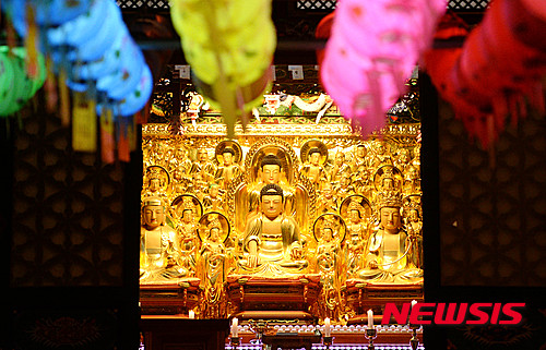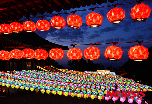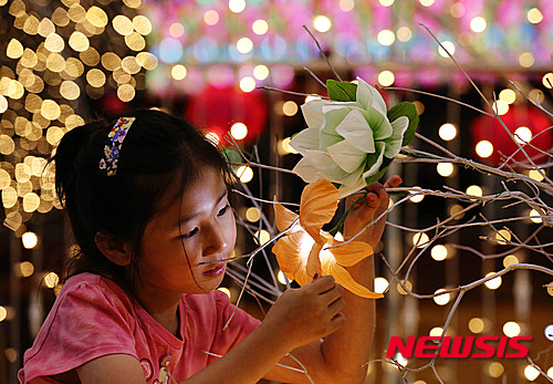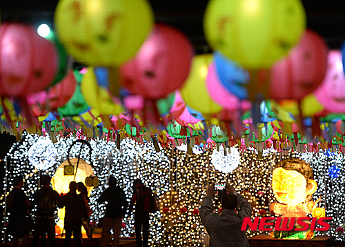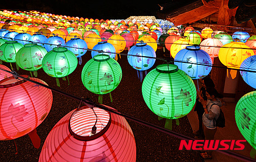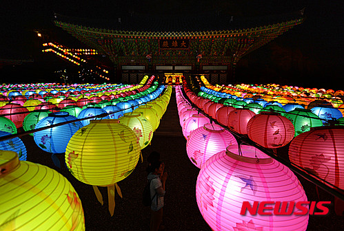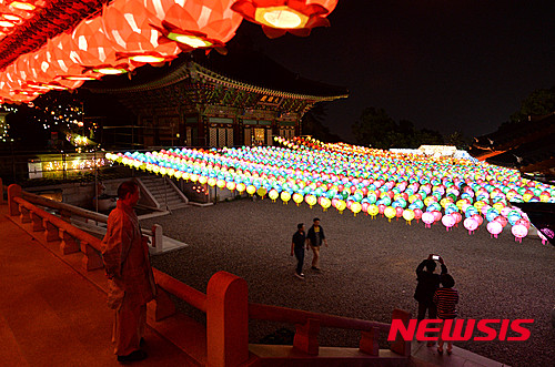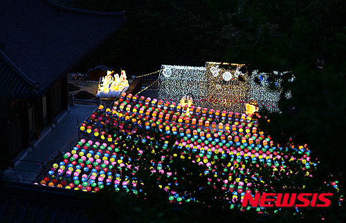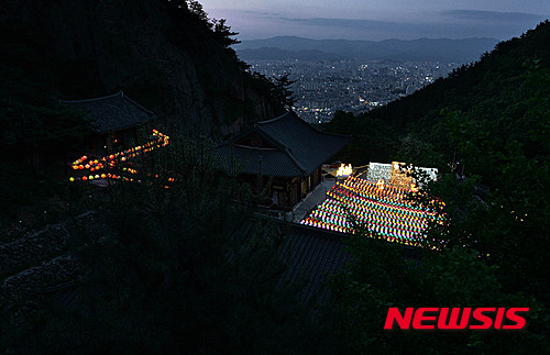 釈迦(しゃか)の誕生日(旧暦4月8日、今年は5月25日)を控え、大邱市南区の安逸寺では20日午後、木造釈迦如来坐像の新規文化財指定を記念して光供養(LEDルミナリエ)が行われ、多くの人が訪れた。
