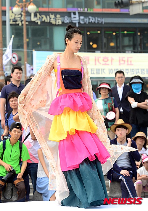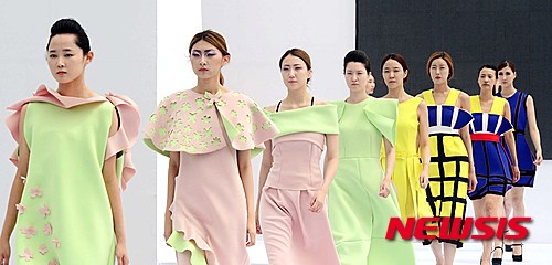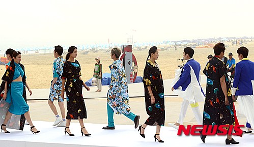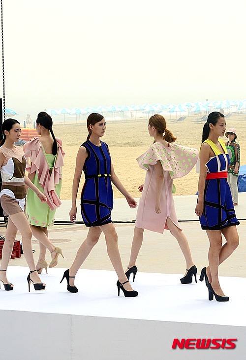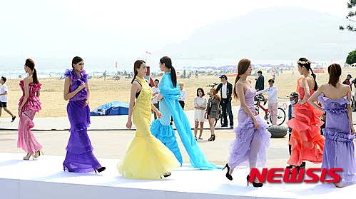 釜山市内の海雲台海水浴場特設ステージで12日午後、霊山大学ファッション・デザイン学科の卒業制作ファッション・ショーを開催するに当たり、モデルたちがリハーサルを行った。