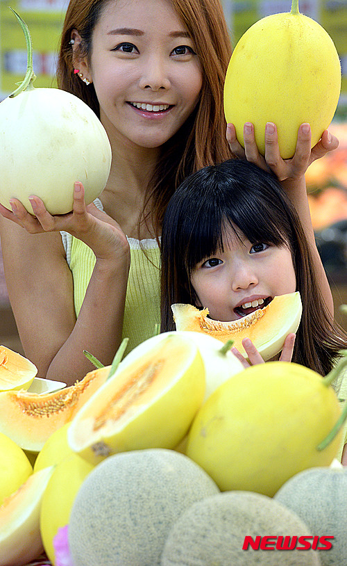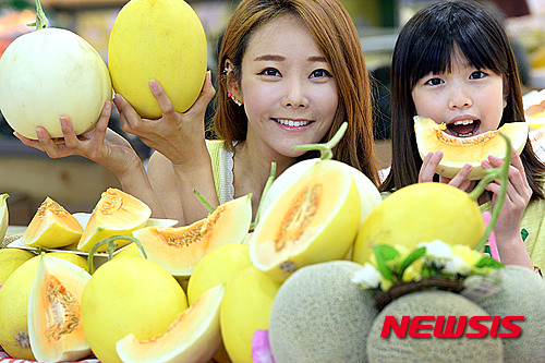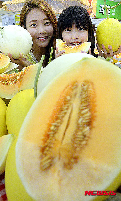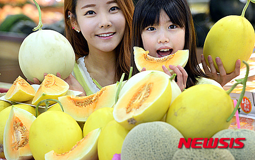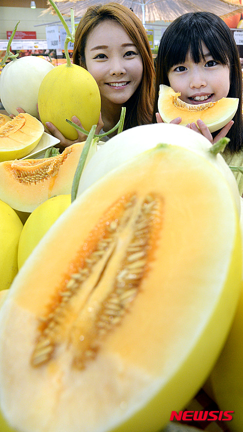 ソウル市中区の大手スーパー「ロッテマート」ソウル駅店で22日、新種の赤肉メロンが店頭に並んだ。