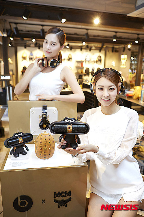 ソウル市江南区新沙洞のMCM M:AZIT売り場で26日、モデルたちが、MCMとBeats by Dr. Dreのコラボ商品発売を迎え、PRを行った。