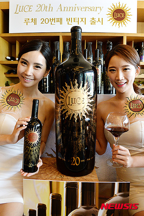 シンドン・ワインは28日、ソウル市竜山区の漢南店で、一般的なワインに比べ24倍大きいサイズの、イタリアのワイン「Luce(ルーチェ)」18リットル入りを韓国で初めて披露した。