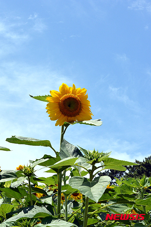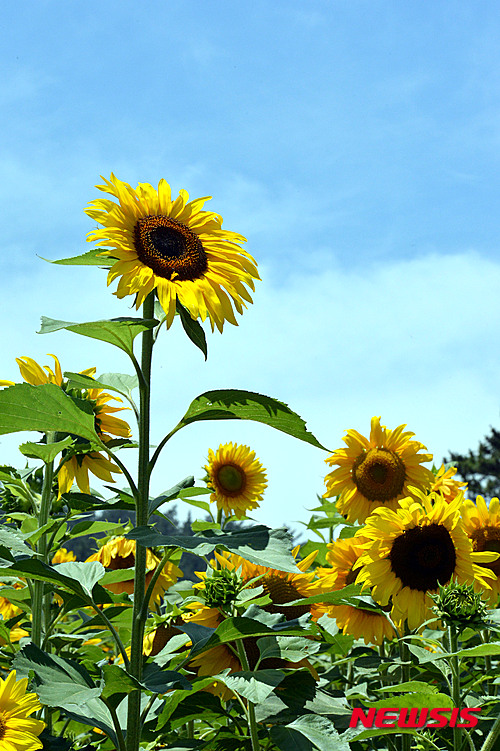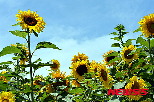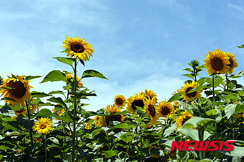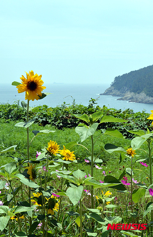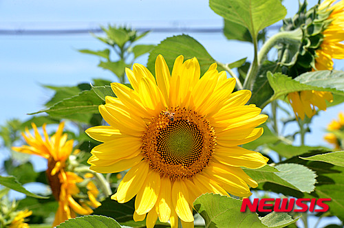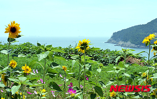 慶尚南道南海郡彌助面の道路沿いでは29日午後、ヒマワリが満開となり、人々の目を引いていた。