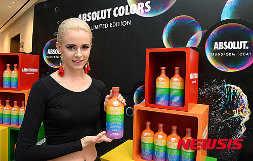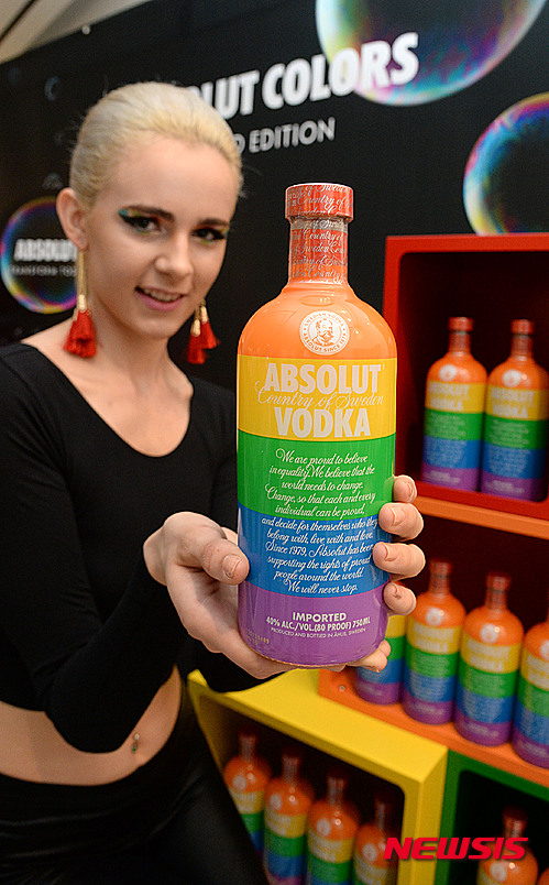 ソウル市中区の新世界デパート本店で30日、ペルノ・リカール・コリアが、虹色の旗をモチーフにした限定品「アブソルート・カラーズ」を売り出した。