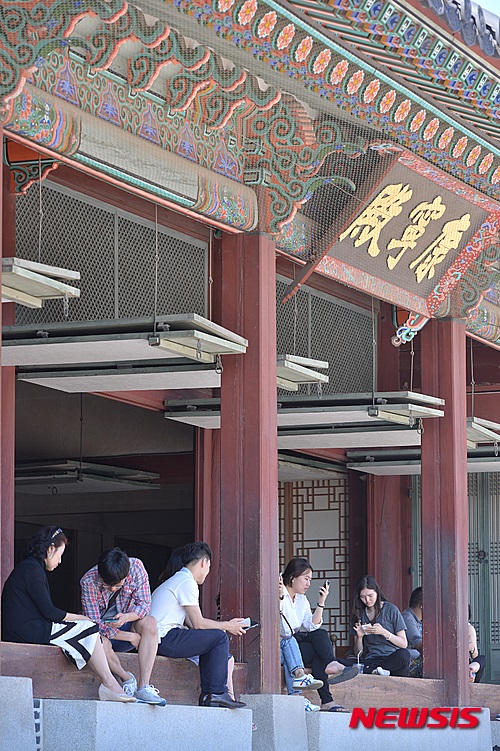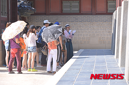 中東呼吸器症候群(MERS=マーズ)感染者が4日連続で発生していない1日午後、多くの観光客が景福宮(ソウル市鍾路区)を訪れた。