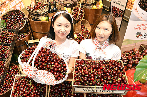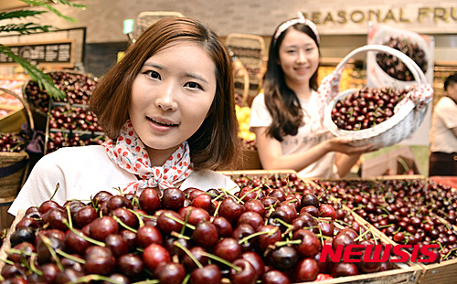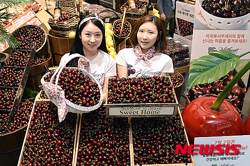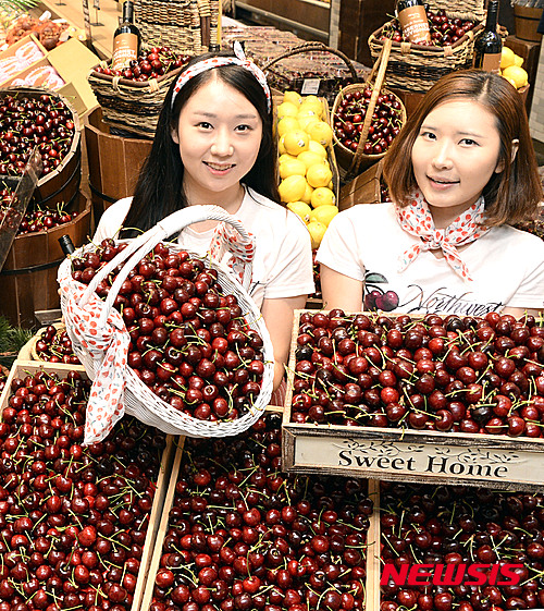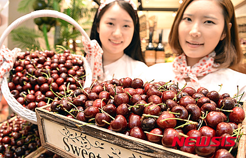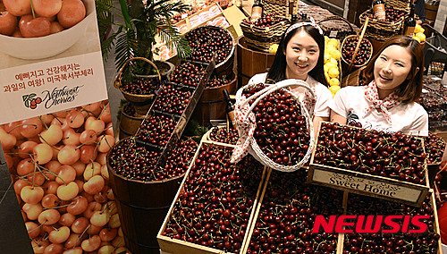 ソウル市中区の新世界デパート本店で2日午前、チェリーデーを迎え、米国5州(ワシントン、オレゴン、アイダホ、ユタ、モンタナ)で収穫されたチェリーが店頭に並んだ。