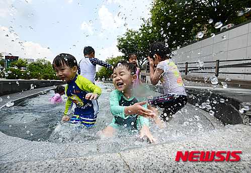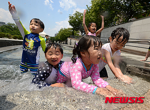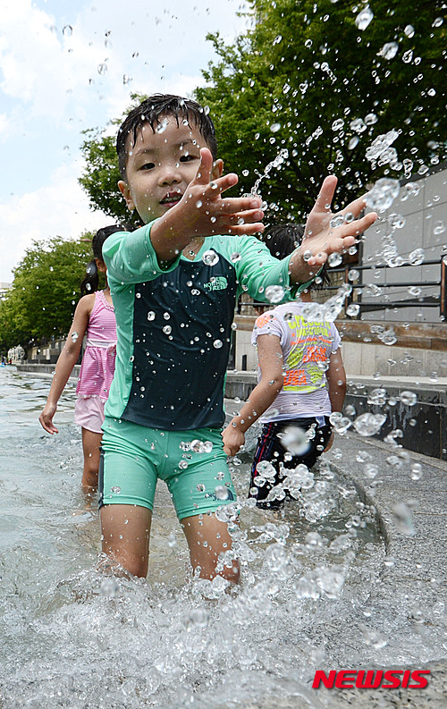 ソウル市松坡区を流れる城内川の水遊び場がオープンした3日午後、子どもたちが水遊びをしながら楽しいひとときを過ごした。