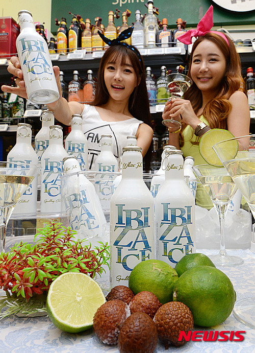ソウル市内の大手スーパー「イーマート」竜山店地下2階の酒売り場で6日午前、モデルたちがプレミアム・カクテル飲料「IBIZA ICE」をPRした。
