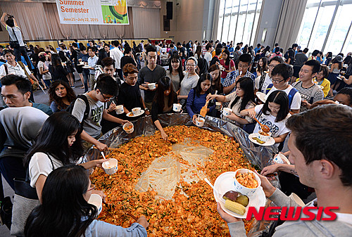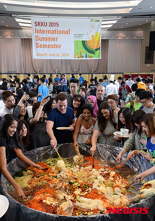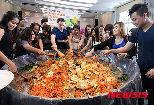ソウル市鍾路区の成均館大学600周年記念館で8日午後、「韓国固有の料理ビビンバ体験イベント」が行われ、同大に通う留学生たちが数百人分のビビンバを作った。