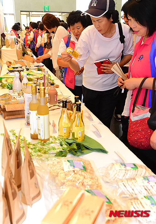 京畿道文化の殿堂(京畿道水原市)で9日、「農村女性京畿米消費促進大会」が開催され、韓国生活改善京畿道連合会のメンバーら農村の女性たちが、地元で収穫されたコメでつくられた加工品を見て回った。