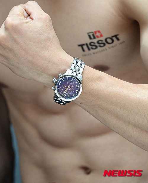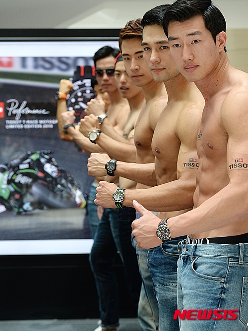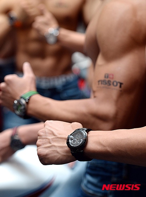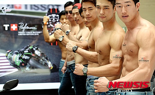 ソウル市永登浦区汝矣島洞のIFCモールで10日午前、スイスの時計ブランド「TISSOT」が2015年T-RACE MotoGPリミテッド・エディションの発売記念イベントを行い、クールガイに選ばれた男性たちがこれをPRした。