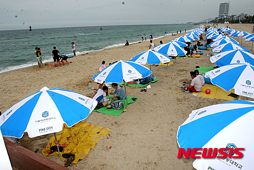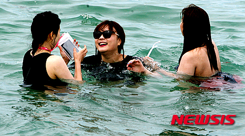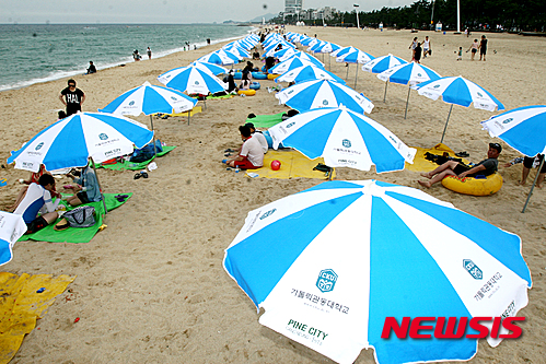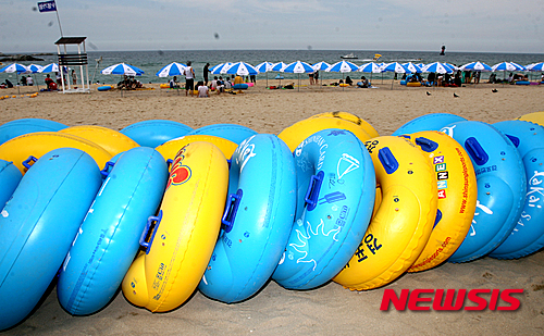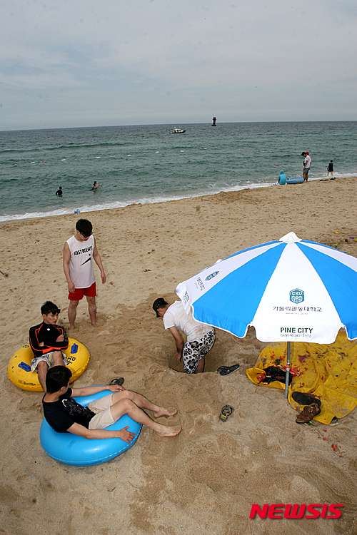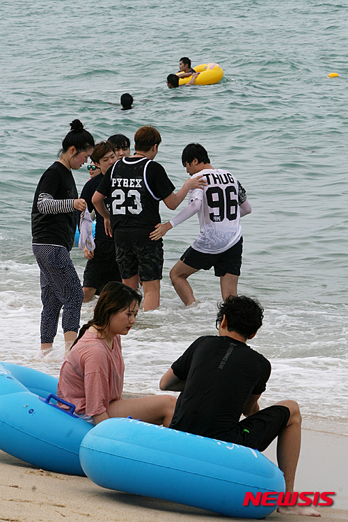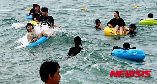 江原道江陵市の鏡浦海水浴場で海開き が行われた10日、若者たちが夏を楽しんでいた。
