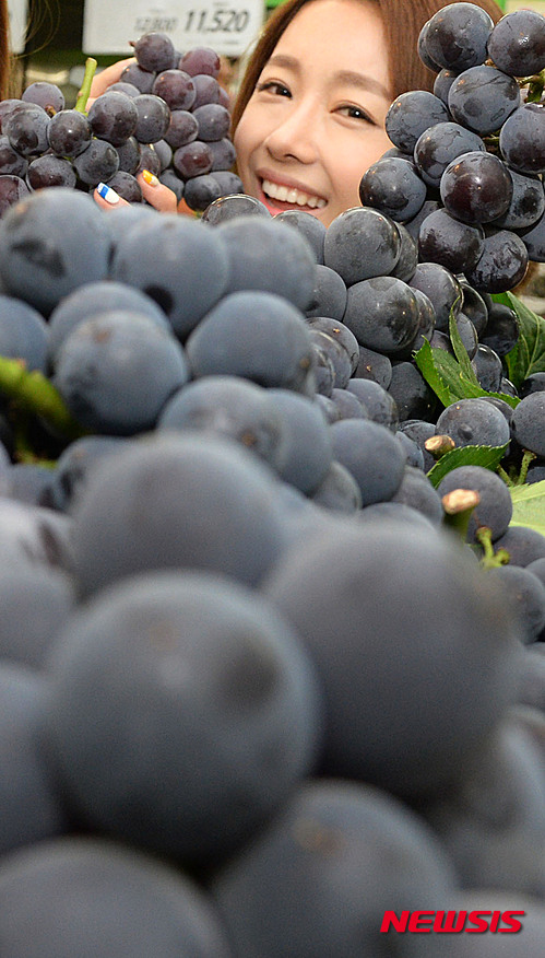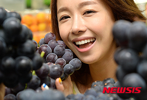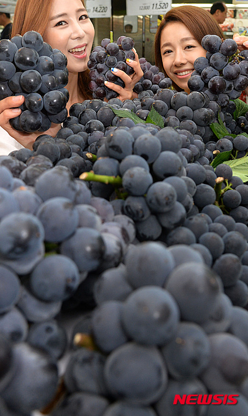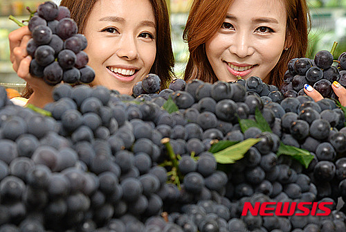 ソウル市城東区の大手スーパー「ロッテマート」杏堂駅店で12日午前、ハウス栽培された巨峰の割引イベントが行われた。