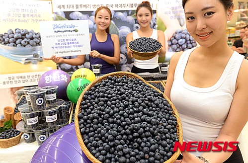 ソウル市城東区の大手スーパー「イーマート」聖水店で15日午前、米国ブルーベリーを発売記念イベントが行われた。