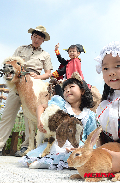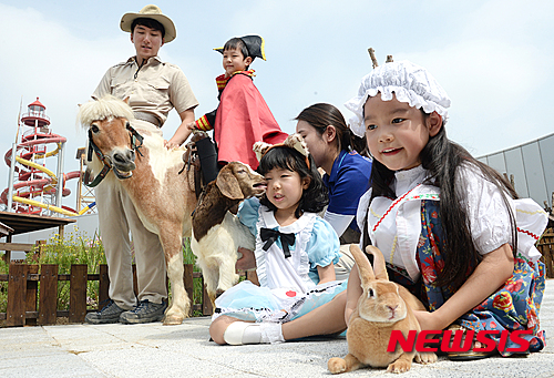 ハンファ・アクアプラネット一山(京畿道高陽市)の屋上にある「ザ・スカイ・ファーム」で22日午前、子どもたちが動物と触れ合いながら楽しいひとときを過ごした。