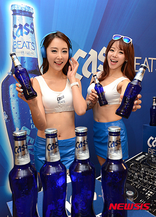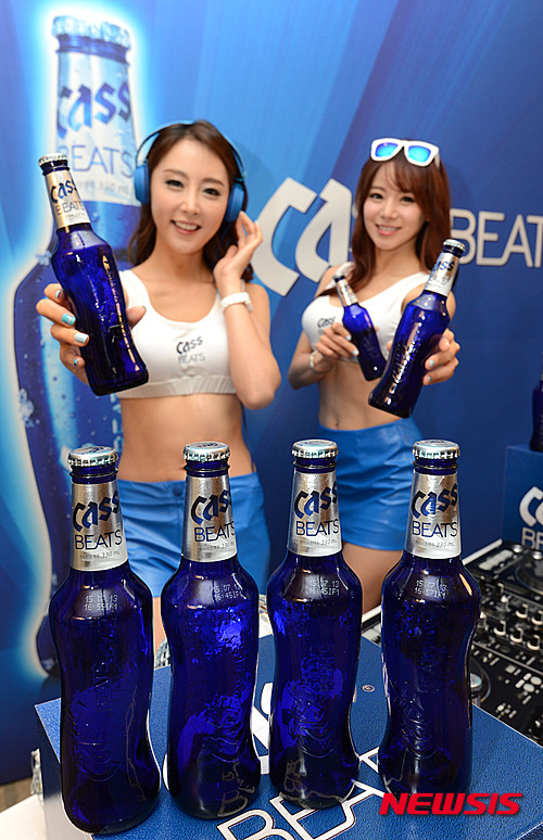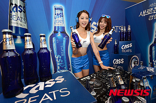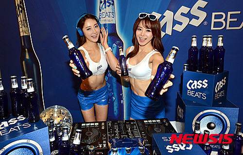 ソウル市中区のウエスティン朝鮮ホテルで23日午前、モデルたちが、OBビールの新商品「Cass Beats」を紹介した。