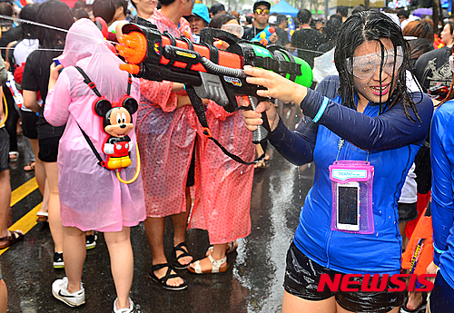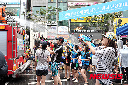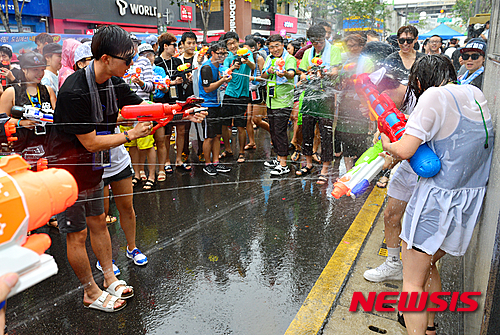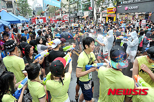第3回新村水鉄砲フェスティバルが開催された25日午後、ソウル・新村の延世路では、多くの市民たちが水鉄砲で水をかけ合いながら楽しいひとときを過ごした。