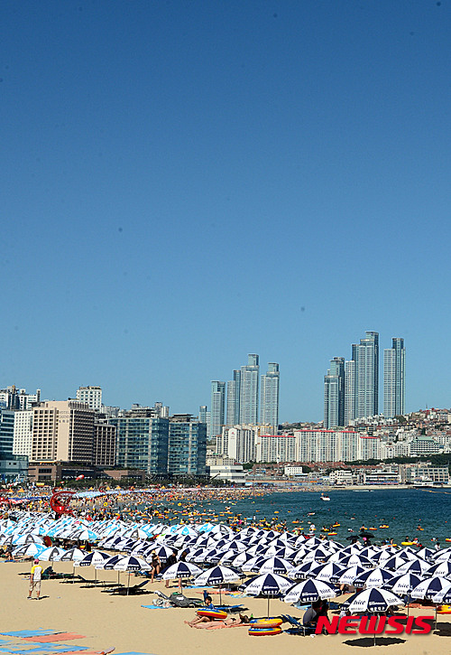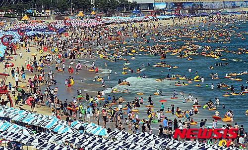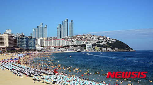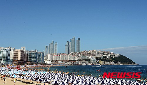 釜山市内の海雲台海水浴場では26日午後、多くの行楽客が水遊びを楽しんでいた。