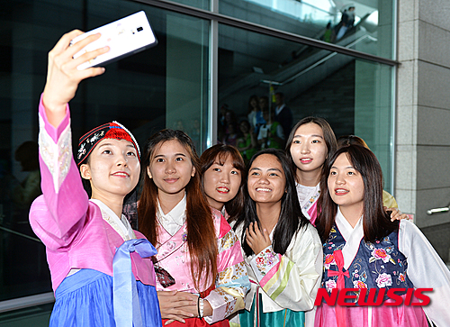 ソウル市竜山区の国立中央博物館で26日午前、「UN参戦国青少年平和キャンプ2015」に参加した外国人学生たちが、韓服(韓国の伝統衣装)を着て、韓国の伝統文化を体験した。
