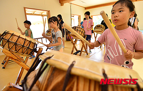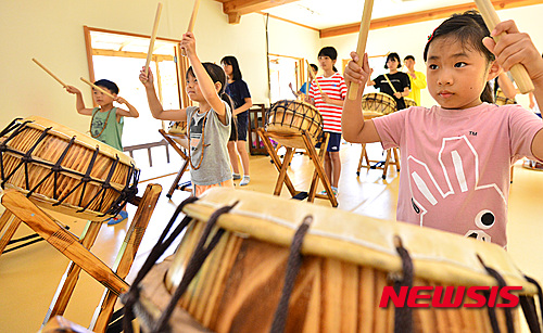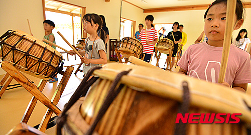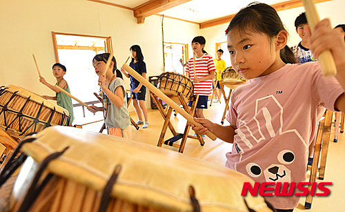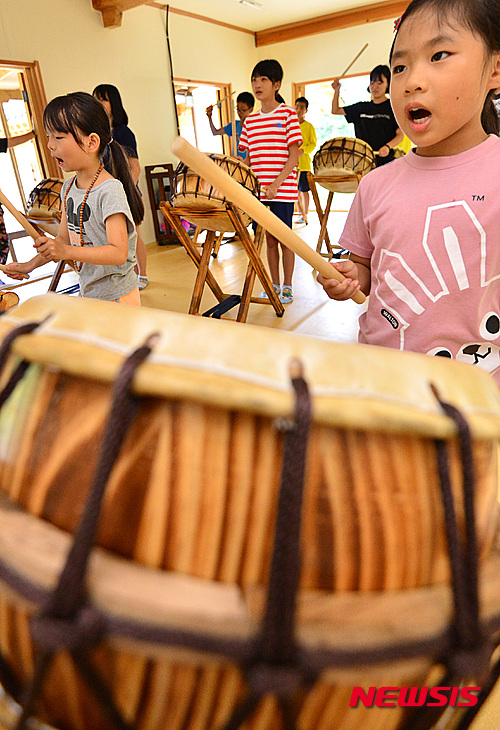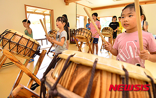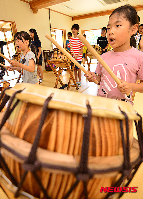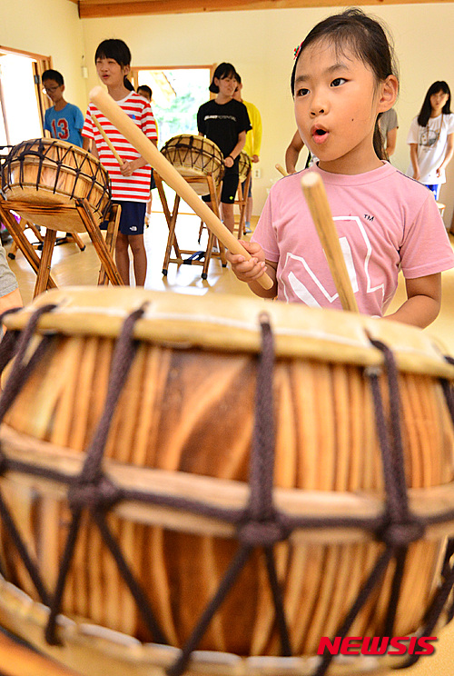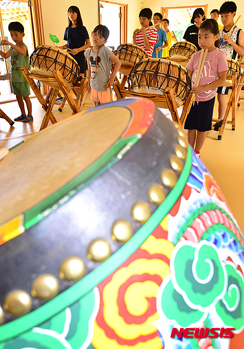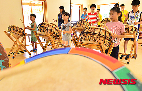 夏休みを迎え、テンプルステイに参加した子どもたちが6日午前、世宗市の永平寺で太鼓を学びながら、リズムに乗って楽しいひとときを過ごした。
