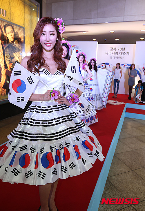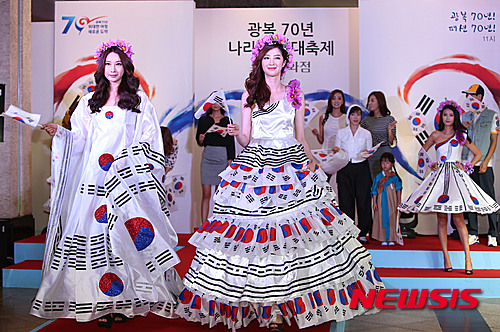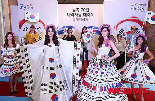 ソウル市中区のロッテ百貨店本店で13日、光復(日本による植民地支配からの解放)70周年記念ファッションショーが行われた。