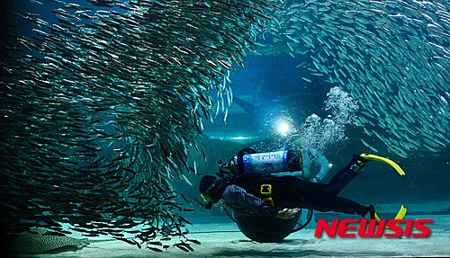 ソウル市江南区のCOEXで18日午後、「イワシマンと英雄たちがつくる光復の波」をテーマにしたイワシのショーが繰り広げられた。