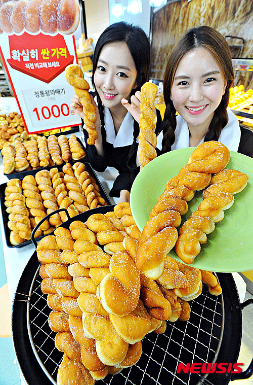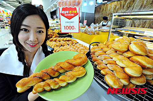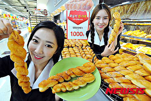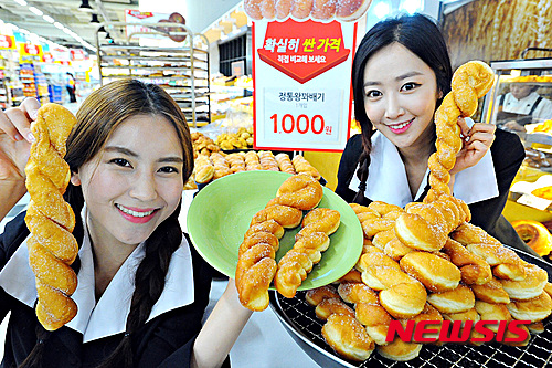 19日午前、ソウル市永登浦区の大型スーパー「ホームプラス永登浦店」では、昔懐かしいツイストドーナツのセールが行われている。ホームプラスでは一般的なものに比べ重さ2倍の特大ツイストドーナツを1000ウォン(約105円)で販売している。