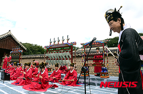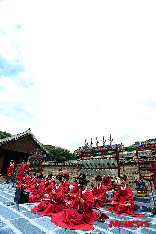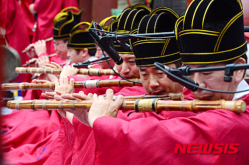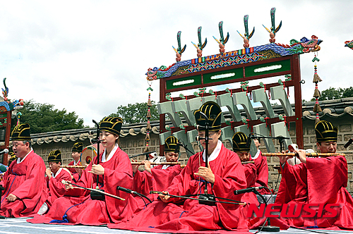 ソウル市鍾路区の宗廟・永寧殿では26日午前、「故宮で国楽鑑賞」と題するイベントが行われ、宗廟祭礼楽保存会の会員たちが宗廟祭礼楽を披露した。