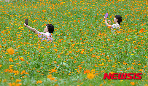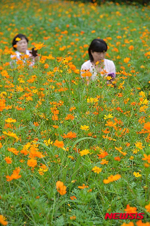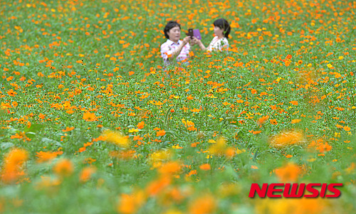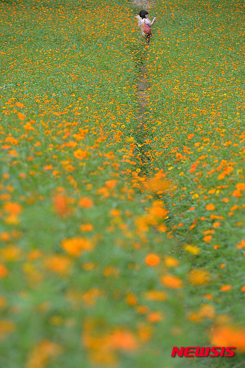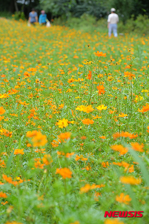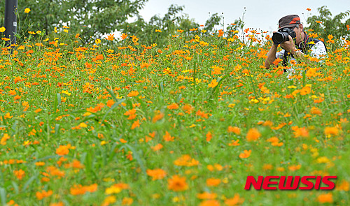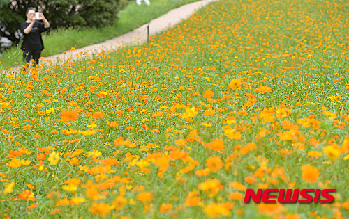 秋の気配漂う26日午後、ソウル市松坡区のオリンピック公園では、キバナコスモスが見ごろを迎えていた。