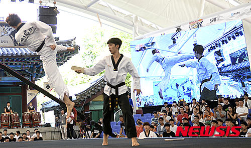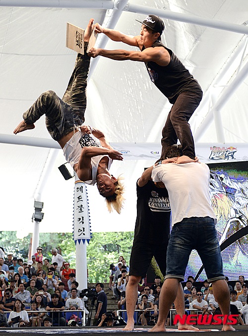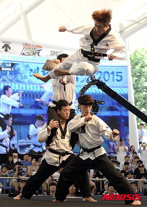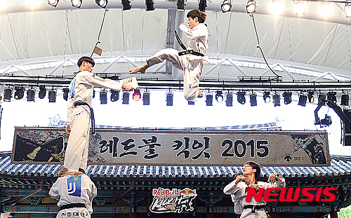 ソウル市松坡区の「ソウル伝統遊び広場」で30日午後、世界最高の蹴り技名人を選ぶ新概念の武術大会「レッドブル・キック・イット2015」が開催され、参加者たちが見事な技を披露した。
