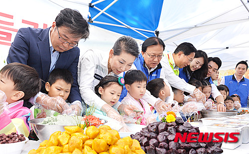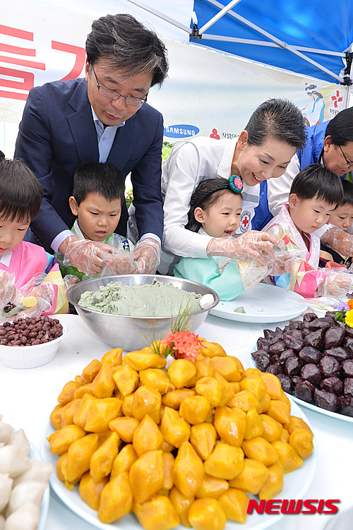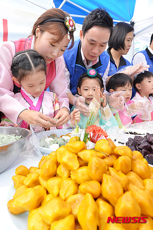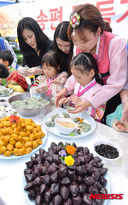 ソウル市恩平区で8日午前、秋夕(チュソク=中秋節、今年は9月27日)を前にイベントが開催され、同区立保育園の関係者と子どもたちが松餅(ソンピョン)をつくった。