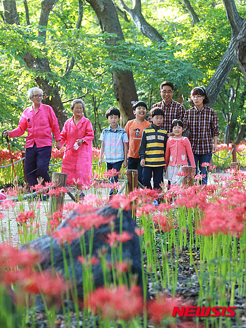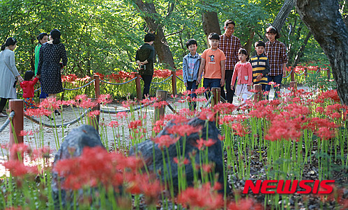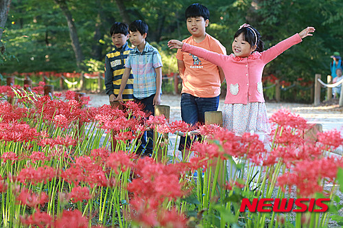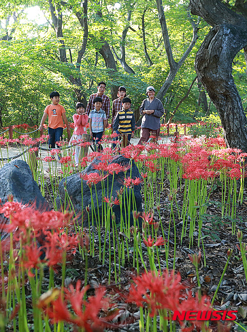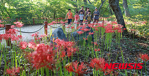 慶尚南道咸陽郡にある「千年の森サンリム公園」では14日、ヒガンバナが咲き誇っていた。