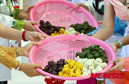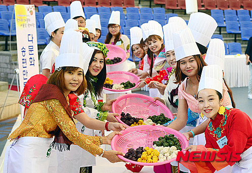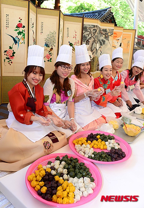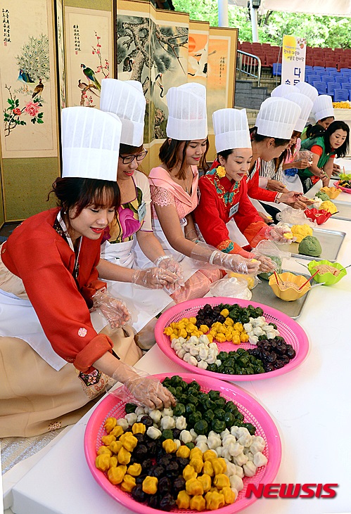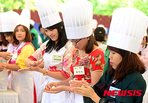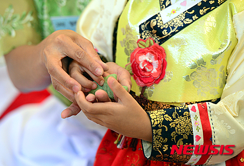 秋夕(チュソク=中秋節、今年は9月27日)を控え、ソウル市松坡区にある「ソウル伝統遊び広場」で16日午前、セマウル婦女会によるイベントが行われ、多文化家庭(国際結婚家庭)の女性たちが松餅(ソンピョン)をつくった。