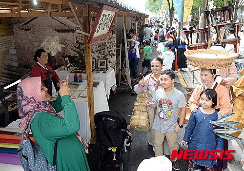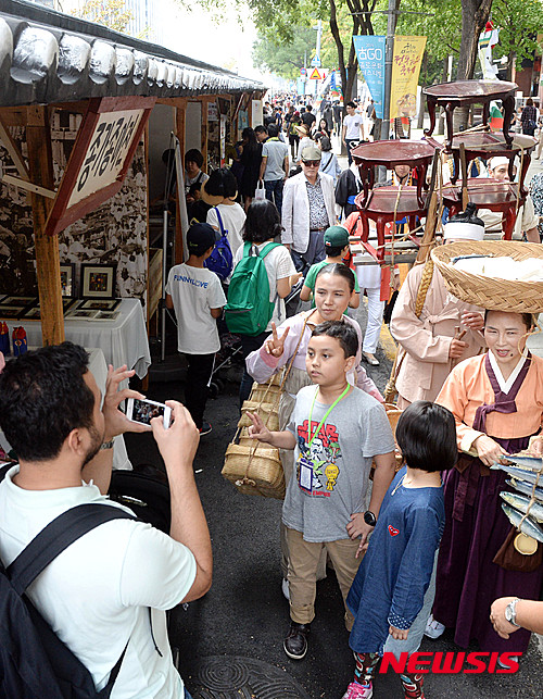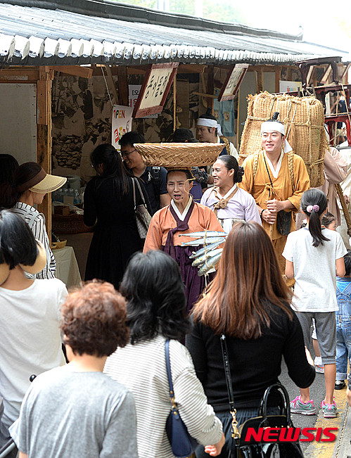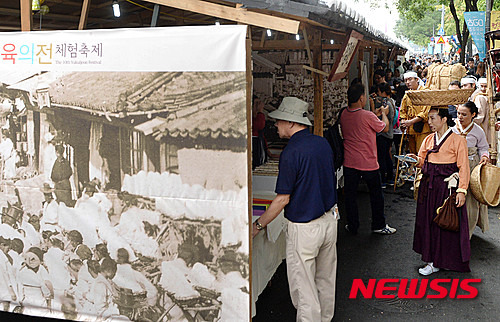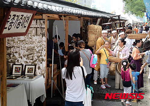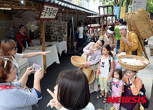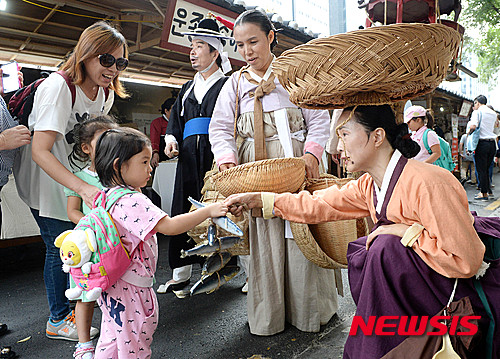 ソウル市内を流れる清渓川にかかる広通橋一帯で20日、「古(GO)鍾路文化フェスティバル」を代表するイベントの一つ、「六矣廛体験祭り」が開催された。「六矣廛」とは、朝鮮王朝時代に鍾路にあり、国の主な需要品6種を調達・販売した大商店のこと。