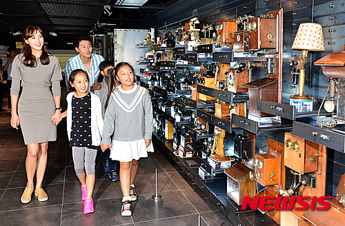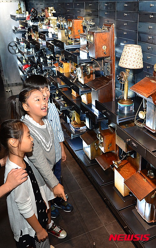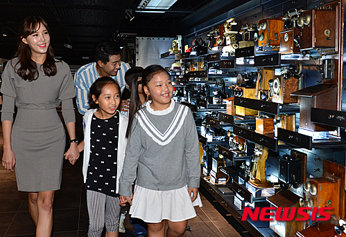 ソウル市鍾路区のKT光化門オルレスクエアで21日午後、大韓民国通信130年特別展示会が行われ、訪れた市民たちが昔の電話機を見て回った。