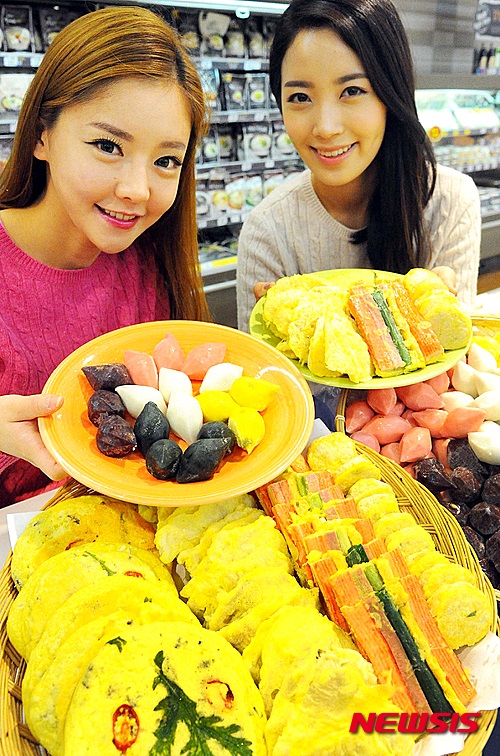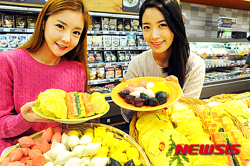 秋夕(チュソク=中秋節、今年は9月27日)を控え、ソウル市内の大手スーパー「ホームプラス」永登浦店では24日、松餅(ソンピョン)や各種ジョン(韓国風お好み焼き)が店頭に並んだ。