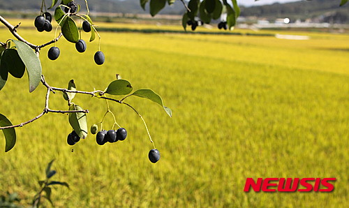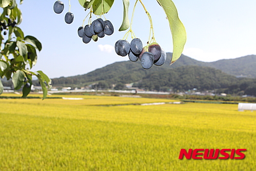 秋夕(チュソク=中秋節、今年は9月27日)連休中の28日、江原道横城郡の農村では、収穫を控え、稲穂が黄金色に輝いていた。