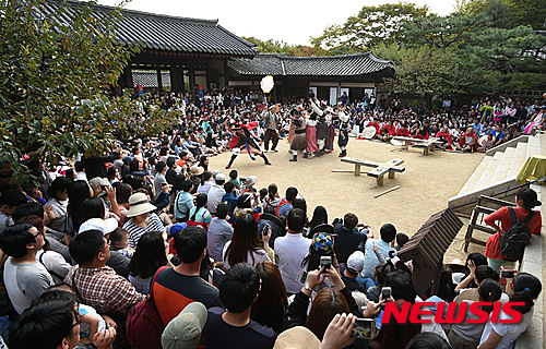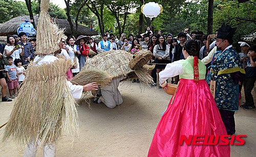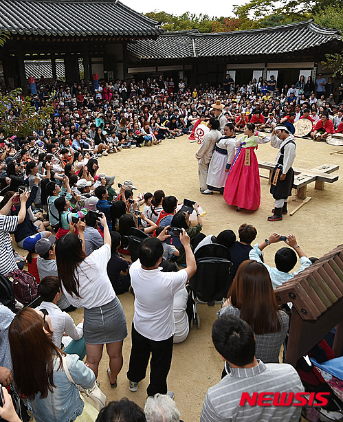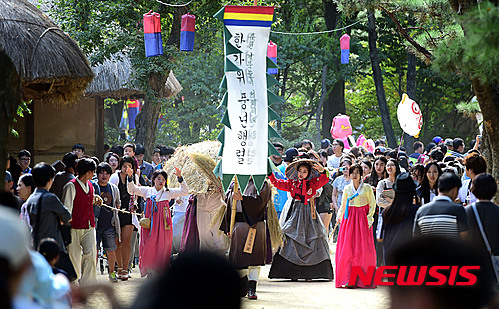 秋夕(チュソク=中秋節、今年は9月27日)連休最終日の29日午後、京畿道竜仁市にある韓国民俗村は、多くの市民たちが訪れにぎわっていた。
