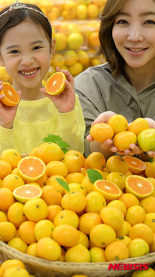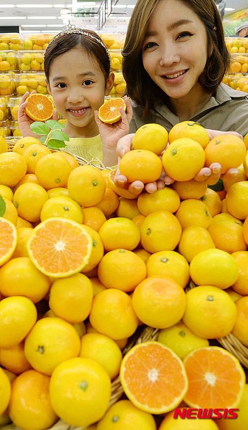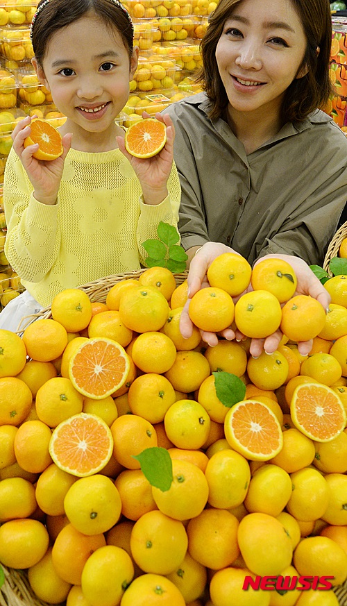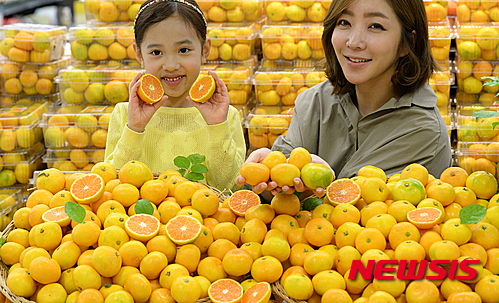 ソウル市竜山区の大手スーパー「イーマート」竜山店で29日、今秋初めて出荷された済州道産のハウスミカンが店頭に並んだ。