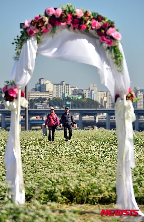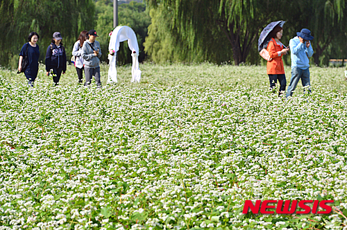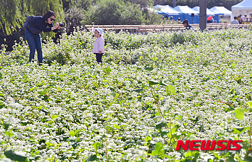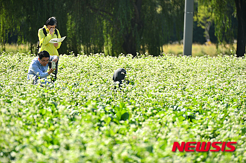 ソウル市内にある盤浦漢江公園のソレ島では4日午前、ソバの花祭りが開催され、市民たちがソバ畑を散策しながら楽しいひとときを過ごした。