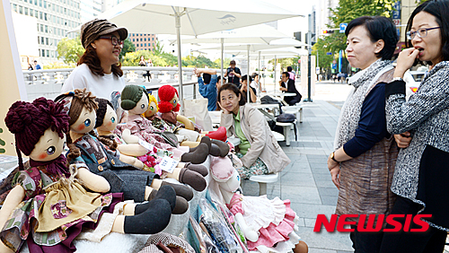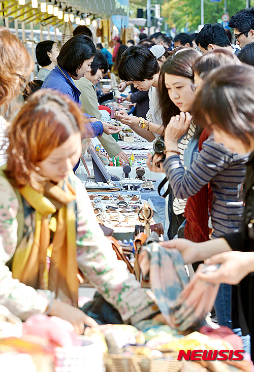 ソウル市内の清渓広場で6日午後、ソウル・ハンドメード博覧会2015が開催され、市民たちが手作り雑貨を見て回った。