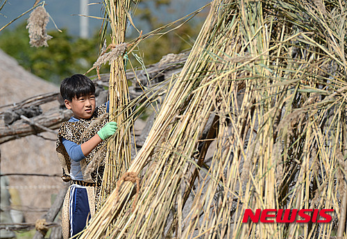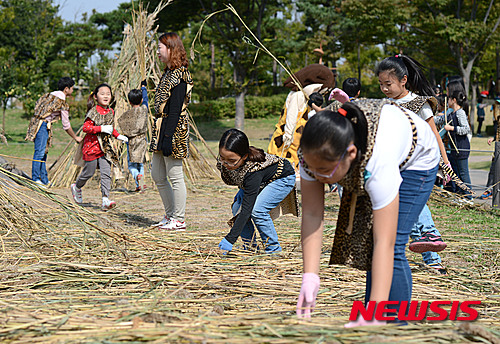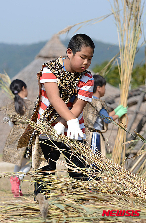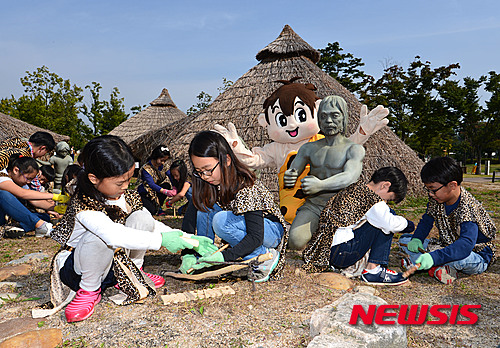 善隣小学校の児童たちが7日午前、ソウル市江東区の先史体験村で行われたプログラムに参加し、先史時代の生活を体験した。