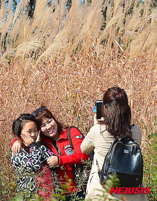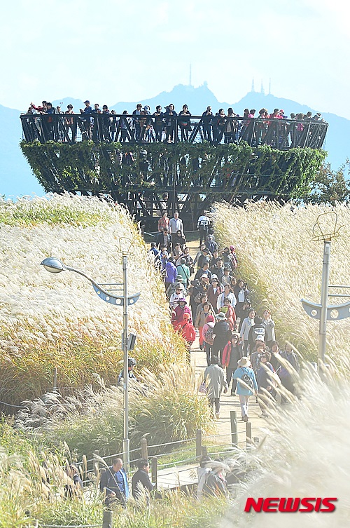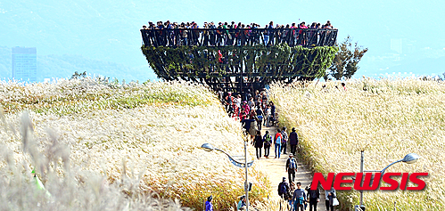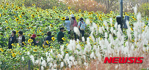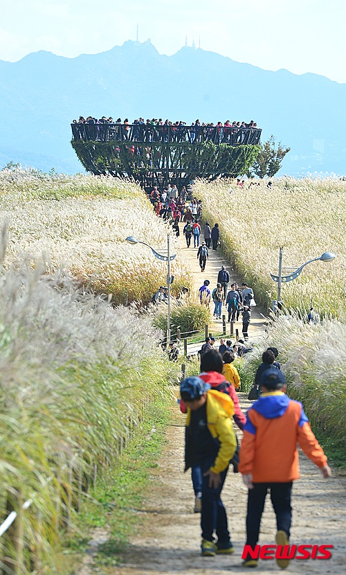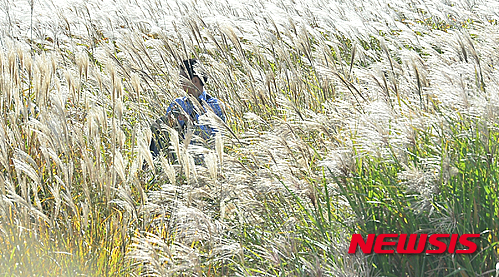 ソウル市麻浦区のハヌル公園では12日午後、多くの市民がススキ畑を散策しながら、秋の情緒を満喫していた。