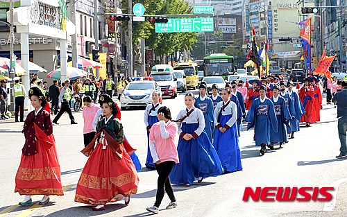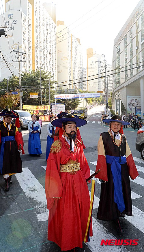 13日午前、東一女子商業高校(ソウル市衿川区)から衿川区庁にかけて、始興行宮の復元をめざし、朝鮮第22代王・正祖の行列を再現するイベントが行われた。