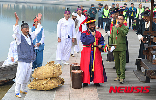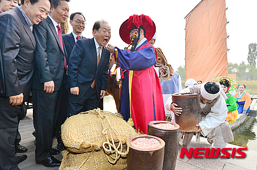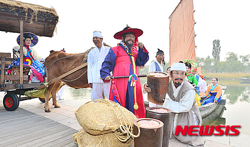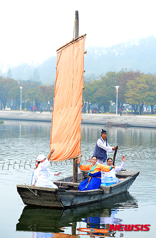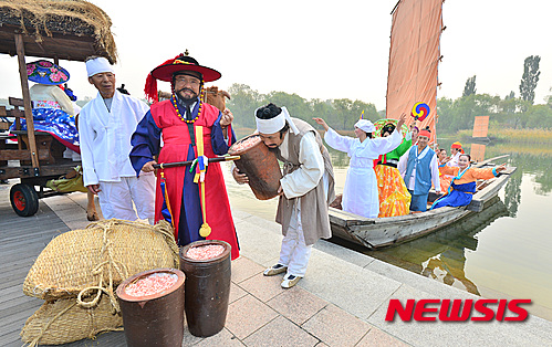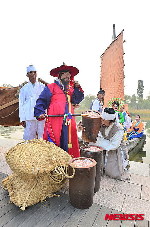 ソウル市麻浦区のワールドカップ公園平和の広場で16日午前、同区主催により、第8回麻浦ナル(渡し場の意)アミの塩辛祭りが開催され、帆船入港再現イベントが行われた。