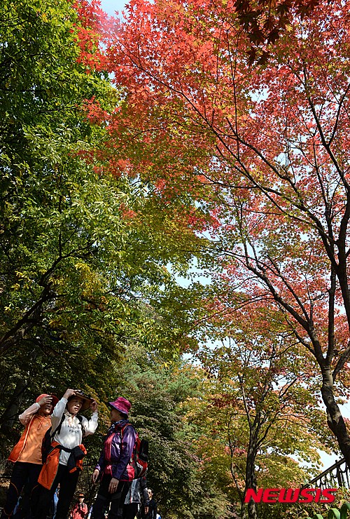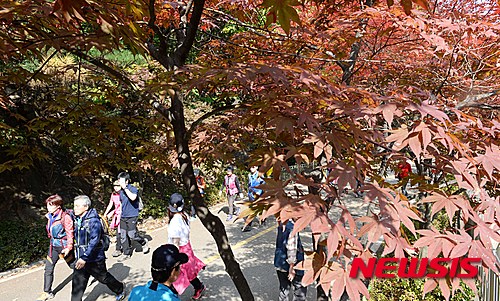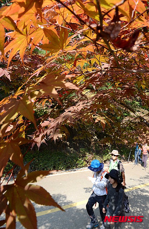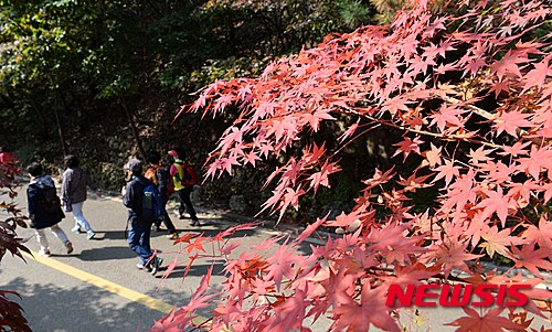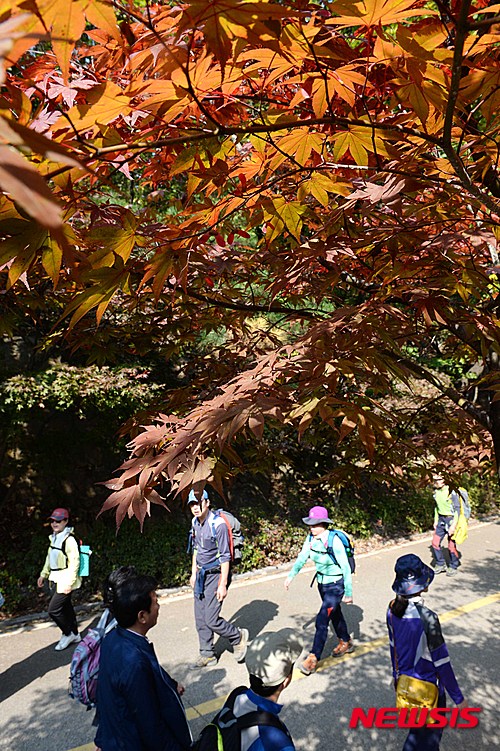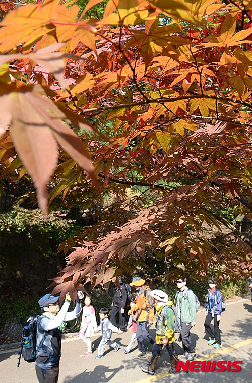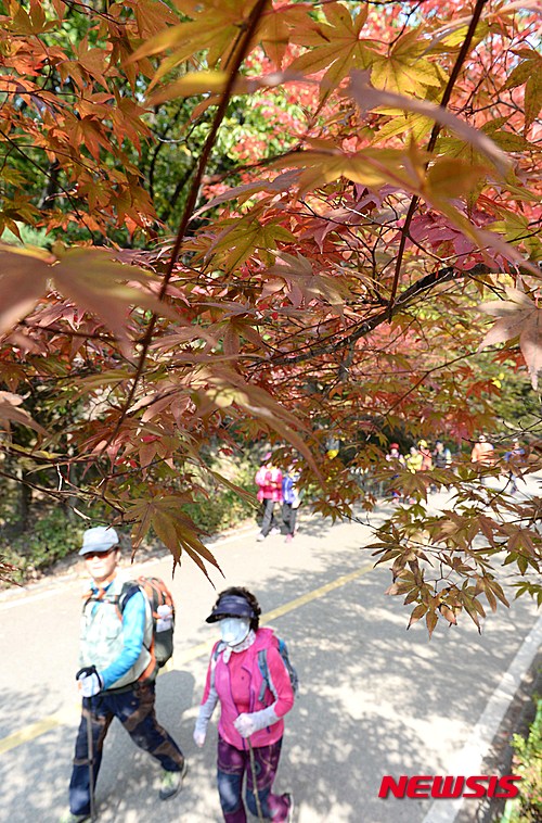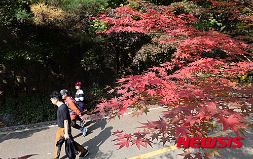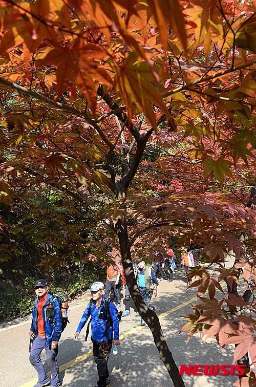 全国的に晴天に恵まれた18日午前、冠岳山(ソウル市冠岳区)では、市民たちが紅葉を眺めながら登山を楽しんでいた。