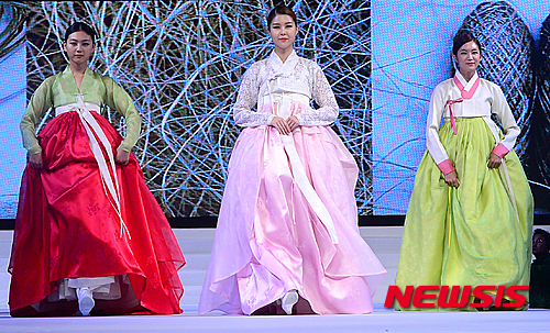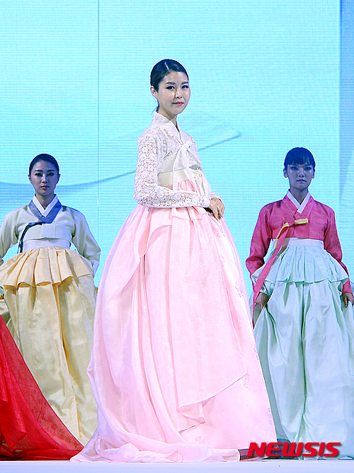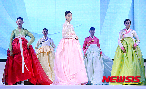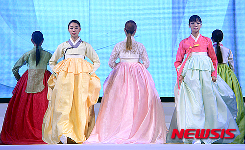 景福宮(ソウル市鍾路区)の興礼門広場で21日午後、景福宮月光韓服(韓国の伝統衣装)ファッションショーが行われ、韓服姿のモデルたちが見事なウオーキングを見せた。